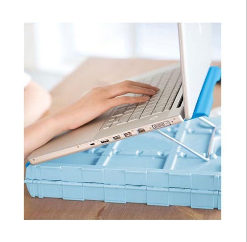 1、將可收折支撐架打開就能在床上舒服暇逸的上網、打游戲。