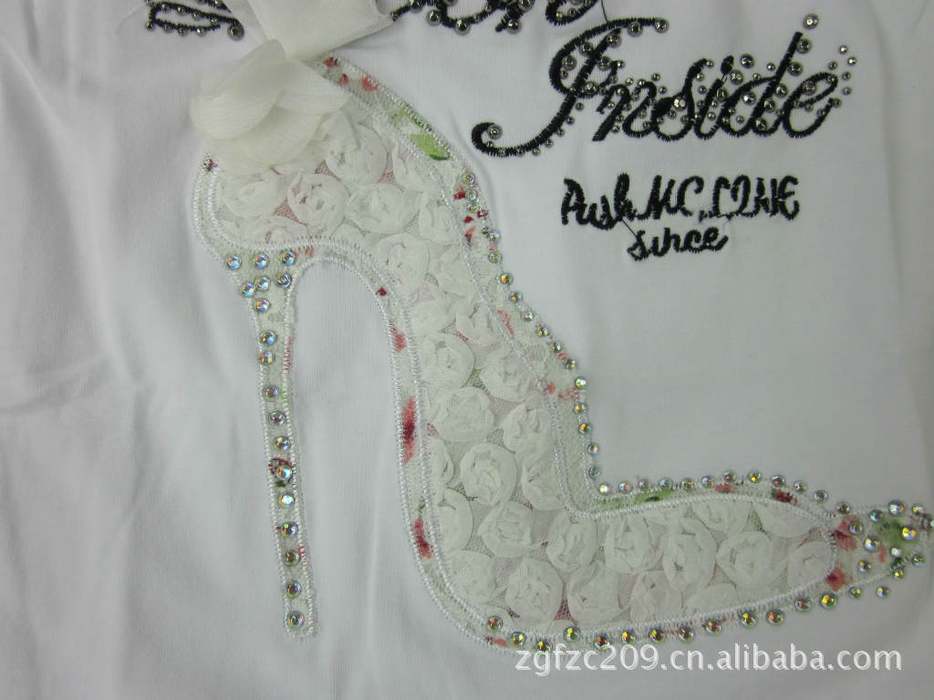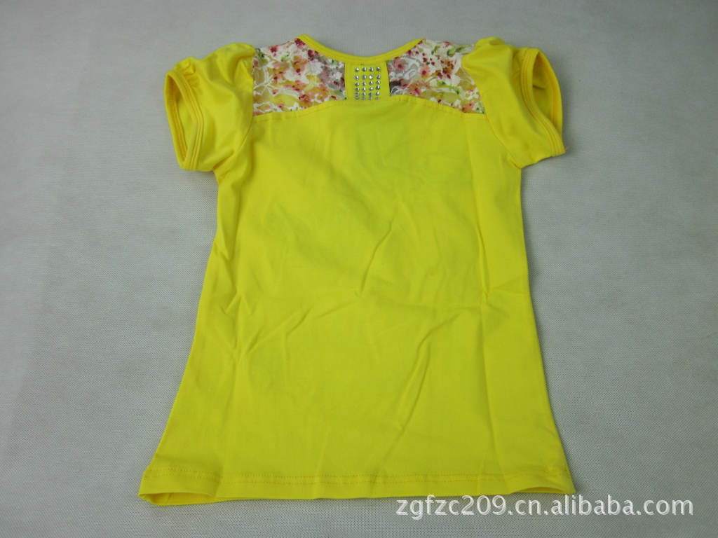 批發日韓版女童T恤時尚獨特雷絲貼秀百塔款