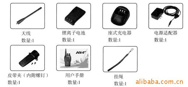 商品標配:主機、電池、天線、皮帶夾、掛繩、充電器 座機、說明書