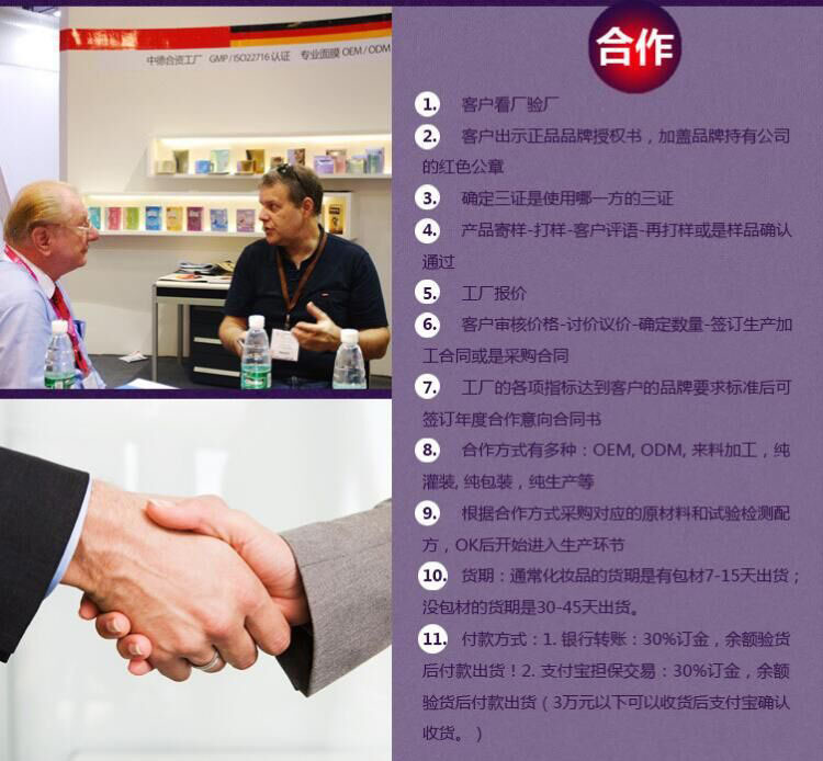 A:簡單講,OEM就是半成品合作,廠家***是負責半成品生產。包材可以客人提供也可以代客戶采購,或者直接把半成品(即內容物)發送給客人自己灌裝,也可以按客人要求報價灌裝費代客灌裝。(所有客戶提供的配方、特殊原料、包才、設計稿、操作指導等而導致的產品出現不穩定現像,廠家只承擔協助義務)