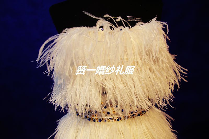2012新銷款駝鳥毛彩色鉆珠***小禮服實拍