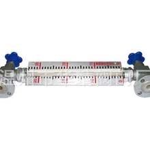 根據浮力原理和磁性耦合作用研制而成。當被測容器中的液位升降時,液位計本體管中的磁性浮子也隨之升降,浮子內的磁鋼通過磁耦合傳遞到磁翻柱指示器,驅動紅、白翻柱翻轉,當液位上升時翻柱由白色轉變為紅色,當液位下降時翻柱由紅色轉變為白色,指示器的紅白交界處為容器內部液位的實際高度,從而實現液位清晰的指示。