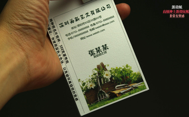 剛古紙名片印刷表面紋路富有變化,有凹凸感,儒雅深沉,古色古香。政府部門、銀行等國有企業經常用該款紙張印刷名片。