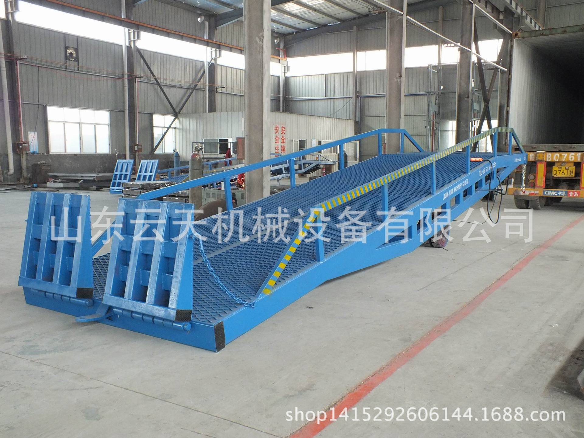 登車橋使用時,保持臺面平穩、牢固,固定鏈***要與車固定牢,拖運時限速3公里/小時。登車橋下降過程中,嚴禁***人員攀爬,登車橋使用過程中嚴禁超載作業。所用液壓油保持清潔,不得混入水和其它雜質,一般每半年更換一次,液壓油一般冬季用N32號,夏季用N46號,當登車橋出現故障時,應立即停止操作,排除故障。