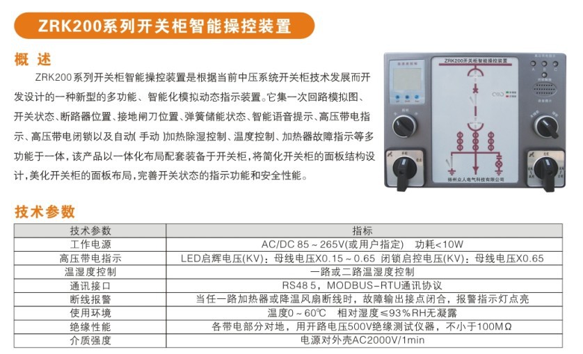 4、智能化功能:采用單片機控制,與常規的開關柜狀態顯示儀相比,增加了智能化功能。除可顯示開關分合狀態外,還可判斷開關小車是否處于試驗位置與工作位置之間還是處于柜體之外并做出指示。三相觸頭溫度值顯示、電流、電壓、有功/無功功率、電度測量,溫度、濕度數值顯示、語音防誤提示功能和過熱報警等功能。