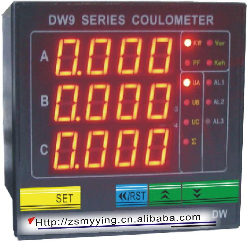 例:DW93-RR4表示為三相電能表,帶兩個報警,RS495通信,輸入為0-600V/0-***,外形尺寸為96*96*100mm,供電為90-260V AC/DC。