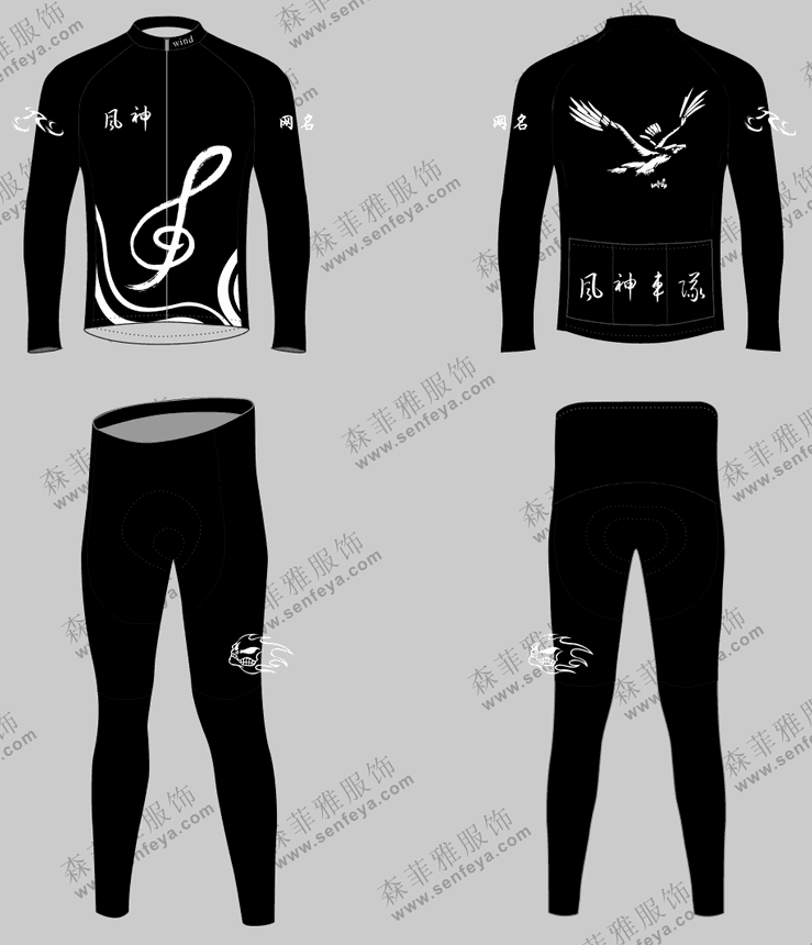 深圳市森菲雅服飾有限公司主營自行車服,輪滑服,騎行服定做,文化衫,球服,跑步服,鐵三服等生產、定制加工,采用超吸濕排汗功能面料、熱升華數碼印花工藝,使整件服裝顏色鮮艷、手感柔軟、整體大方。設計款式多樣,任君挑選!
