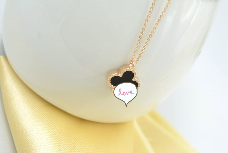 鈦鋼玫瑰金四葉草項鏈 18K黑白雙面四葉草項飾 飾品代理加