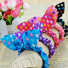 2015新款 彩色可愛心系列蝴蝶結兔耳朵 發圈布藝發飾廠家現貨批發