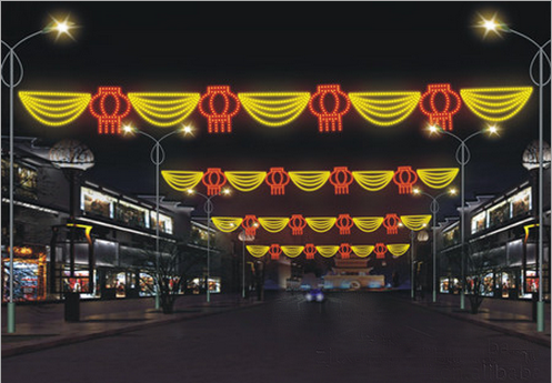 建設路LED過街燈 過街燈廠家 2017春節路燈桿造型燈亮化