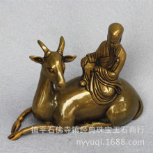 古玩銅器收藏 純銅壽星騎鹿擺件家居裝飾工藝品風水擺件延