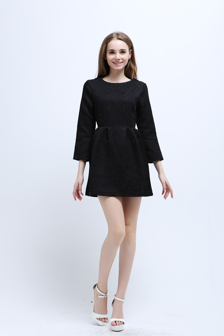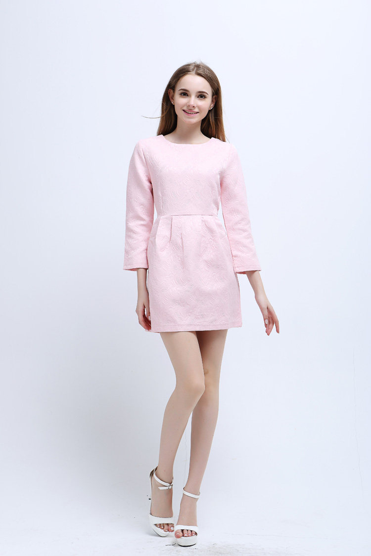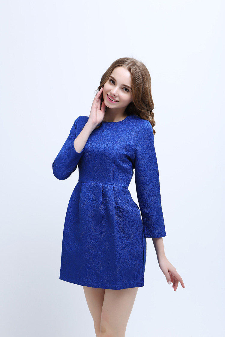 2015歐美新品精美印花九分袖連衣裙 職業OL大碼修身打底裙