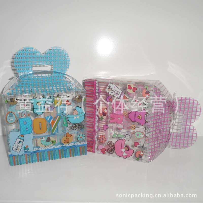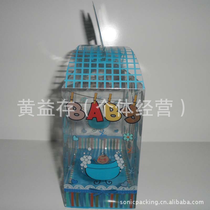 【產品描述】:整個包裝盒可愛童趣,采用優質透明PVC材料,多色印刷;盒子正背面印有各式幼兒兒童用品圖案,底部帶花式盒扣;使用的材料厚度是0.21MM,軟硬度適中;有藍色、紫色可選;整體而言,是一款小巧精致的禮品包裝盒。