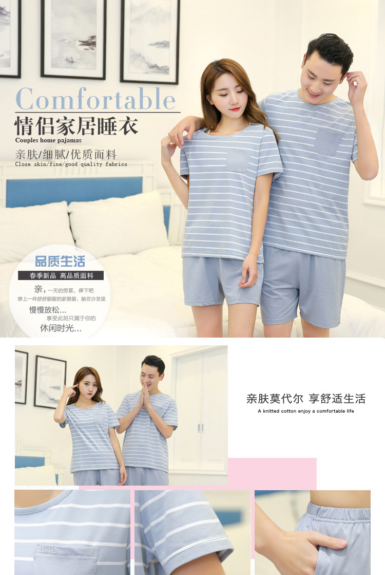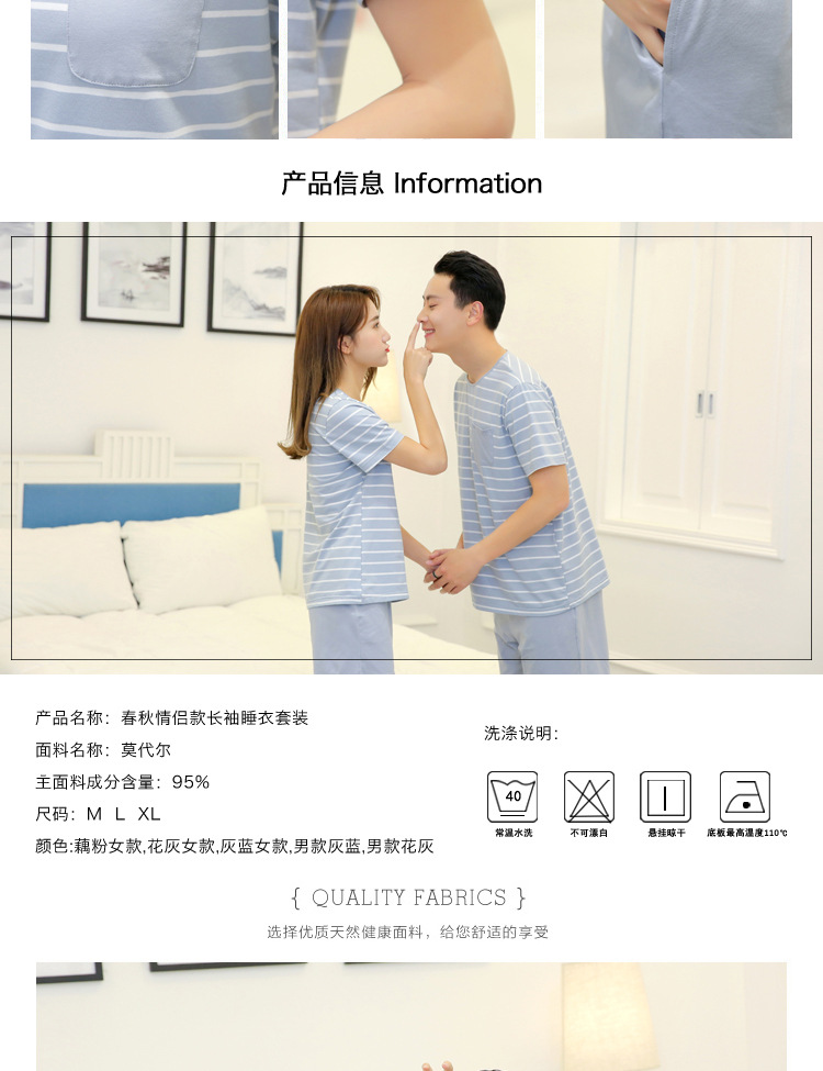 這款也有兩種面料的 一款是純棉的 另一款是莫代爾的 親 舒適親膚的 歡迎大家選購保證是合理的價格 這款情侶套裝真的很舒服的 希望大家來電