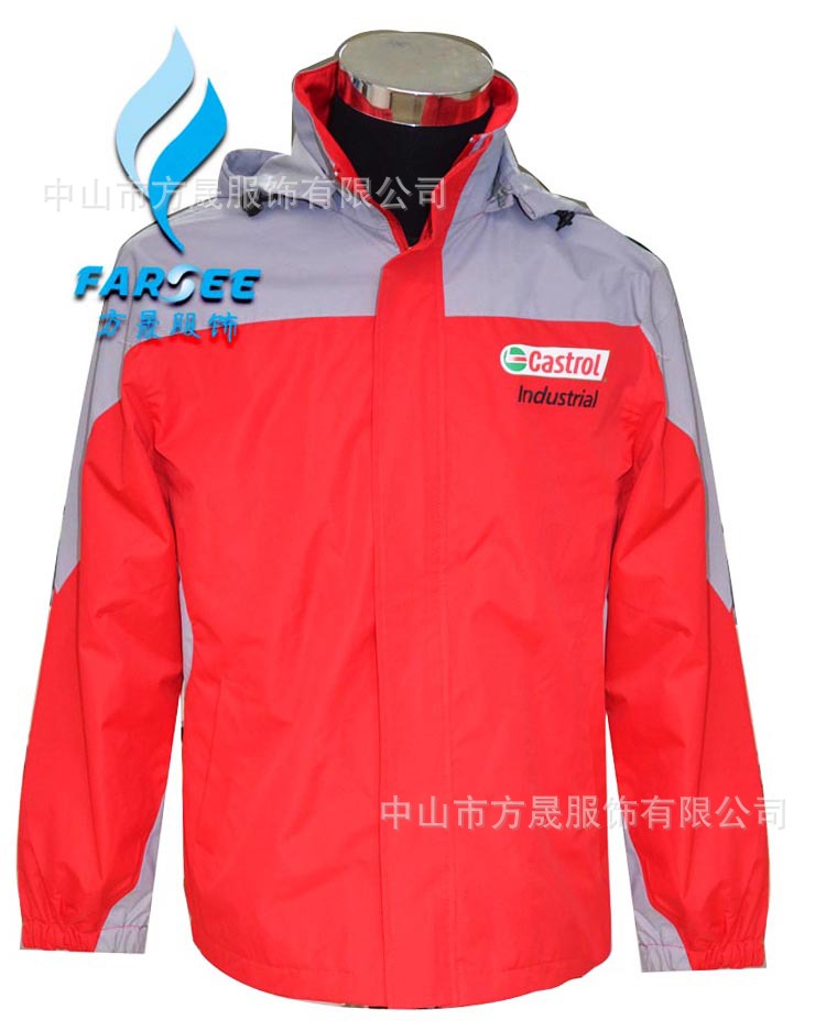 加實多秋裝防風防雨風衣男 戶外防風防雨連帽拼色沖鋒衣 批發定做