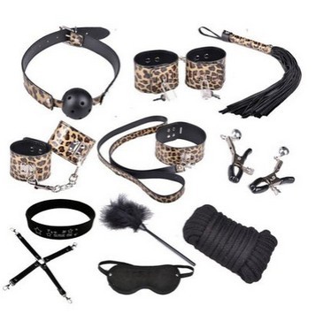帶鎖情趣皮革用品另類玩具豹紋套裝手銬皮鞭口塞成人用品保健品
