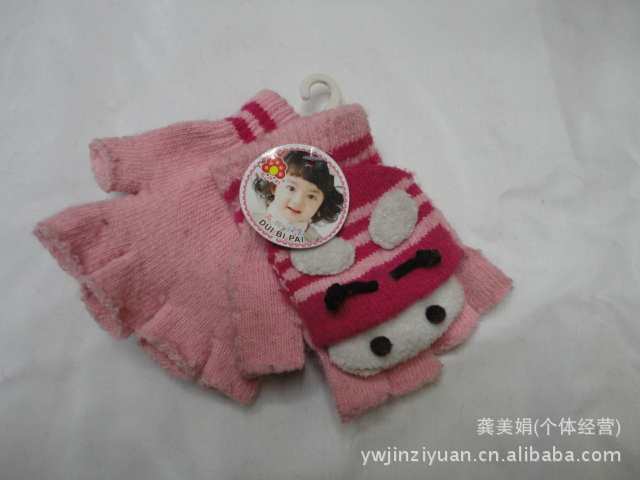韓版時尚羊毛提花小孩半指翻蓋手套 針織手套 魔術手套