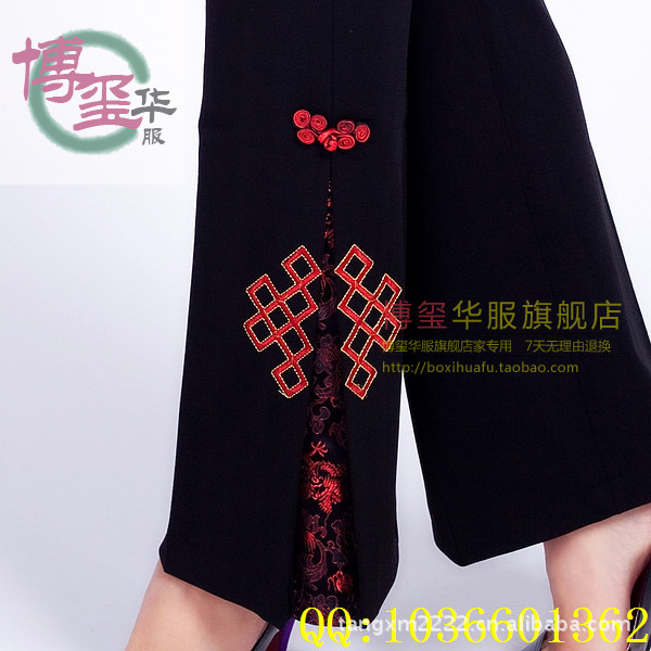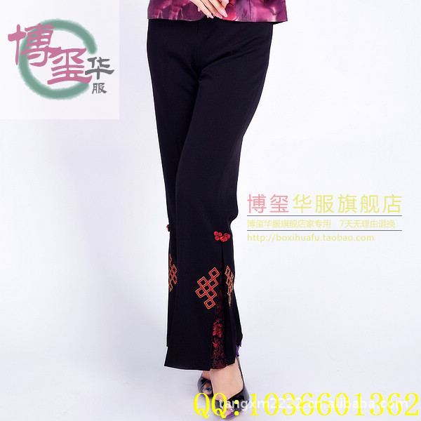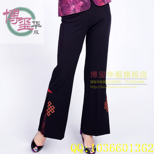 廠家供應唐裝中式繡花褲子春秋長褲 中老年休閑時尚小玫瑰花唐褲