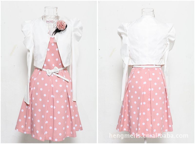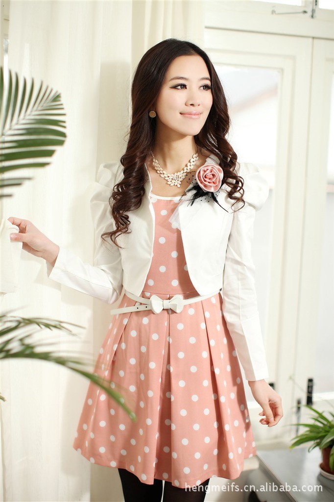 2012熱賣新款春裝,韓版OL褶皺修身兩件套連衣裙(配腰帶、胸花)