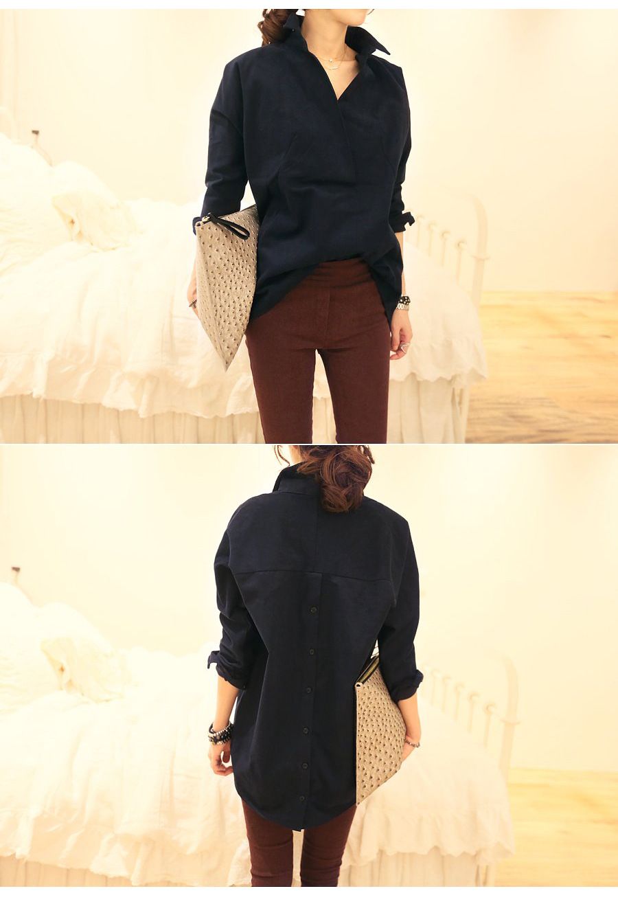 2015春裝熱銷新款韓版女裝寬松大碼胖MM純棉長袖襯衣8716