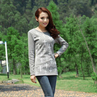 特價廠家直銷秋冬加厚不倒絨加長圓點印花女衛衣保暖衣新款 促銷39.0 ¥39.0熱銷0