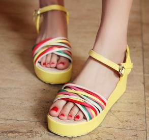 2012爆款彩條厚底涼鞋