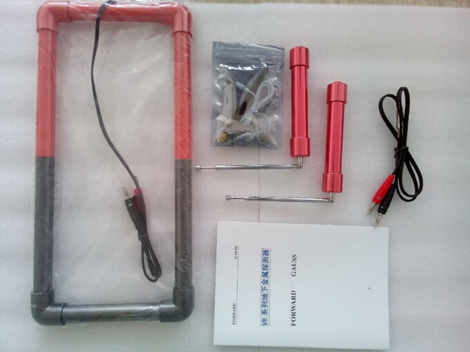 6. 區域測試時,把發she器放在地面上,把發射天線連接到發she器的對應的插孔內。在發she器打開的時候。絕dui不要插拔發射天線,如果那樣做的話,將會對機器造成損 壞,對操作人員造成嚴重傷害。在發she器的前面,挖一個小的壕溝,把發射天線埋到溝里,埋到黑線處。把頻率選擇設置到需要的位置。打開發she器,然后逆時針旋 轉“水平”和“垂直”兩個旋鈕到最大處,然后再順時針旋轉著兩個兩個按鈕,直到它們上面對應的兩個指示燈變亮(這個用來設置發she器適合地面情況)。在3到 5分鐘之后,站到離發she器5到6米遠處,像上面練習使用接收天線的時候一樣,圍繞這個發射天線做圓周運動,保持距發射天線的距離5到6米遠,如果這個區域 沒有要找的目標物,接受天線不應當交叉。