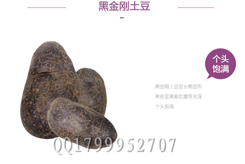 黑金剛土豆屬中早熟型,從播種到成熟生育日數為90天,株型直立,株高60-65厘米左右,花紫色,深藍紫色花冠,花期長,自然結實,塊莖長橢圓形,深紫皮、深紫肉,無雜色,單個薯塊重約200克左右,芽眼淺,結薯集中,耐貯運,植株高抗早晚疫病、病毒病,休眠期短。宜采用壟作點播方式種植,株距20-25厘米。行(壟)距65厘米,畝用種100公斤左右,適宜種植密度5500-6500株/畝,產量約2000-2500公斤/畝,高產優質田每畝可達3000公斤。